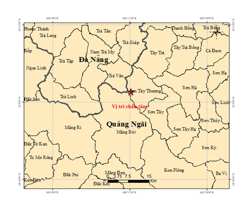 Vào hồi 20 giờ 15 phút 40 giây (giờ GMT) ngày 16 tháng 4 năm 2026, tức 03 giờ 15 phút 49 giây (giờ Hà Nội) ngày 17 tháng 4 năm 2026, một trận động đất có độ lớn M = 2.8 xảy ra tại vị trí có tọa độ 15.033° vĩ Bắc – 108.254° kinh Đông, độ sâu chấn tiêu khoảng 8.1 km. Động đất xảy ra tại khu vực xã Sơn Tây Thượng, tỉnh Quảng Ngãi. Cấp độ rủi ro thiên tai: 0.